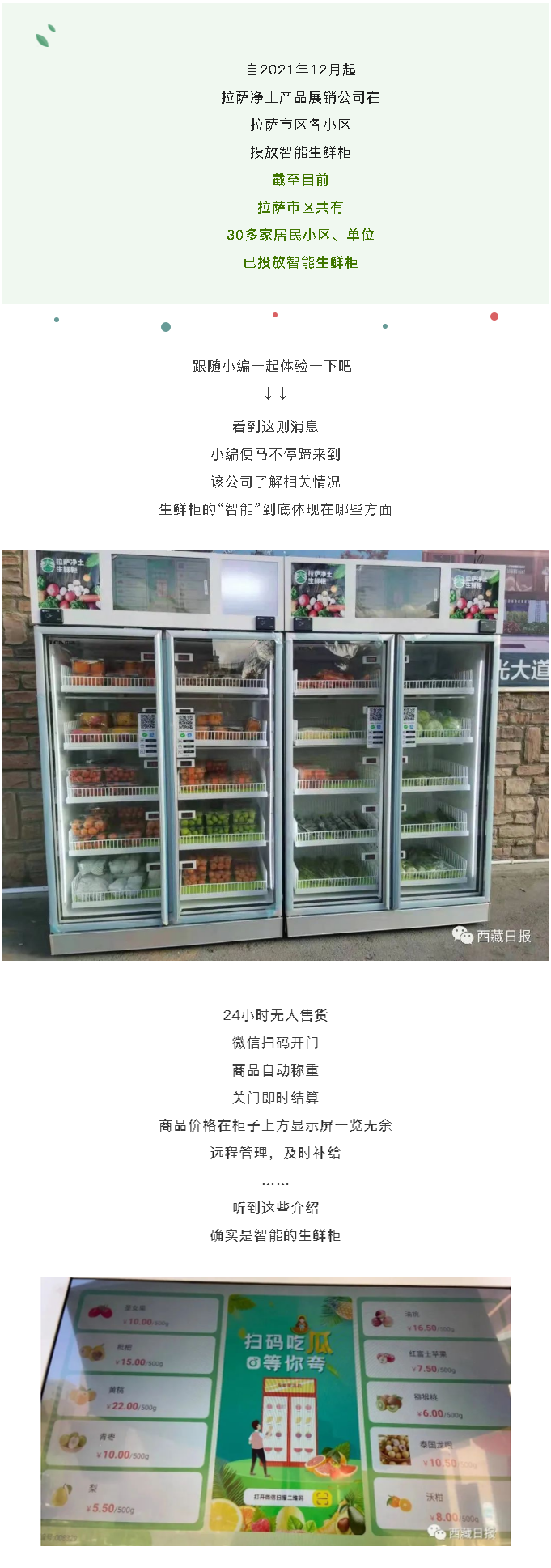 怪方便的!24小時無人智能生鮮柜在拉薩這些小區(qū)投放~