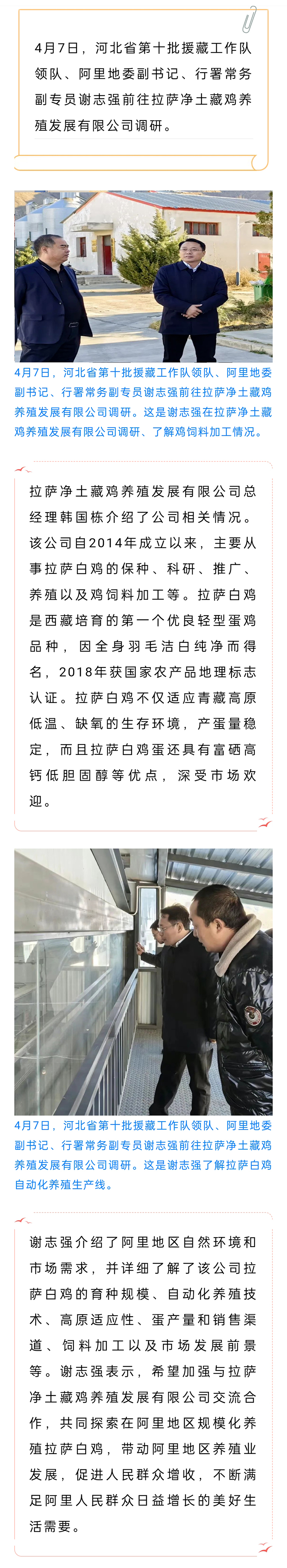 謝志強(qiáng)在拉薩凈土藏雞養(yǎng)殖發(fā)展有限公司調(diào)研