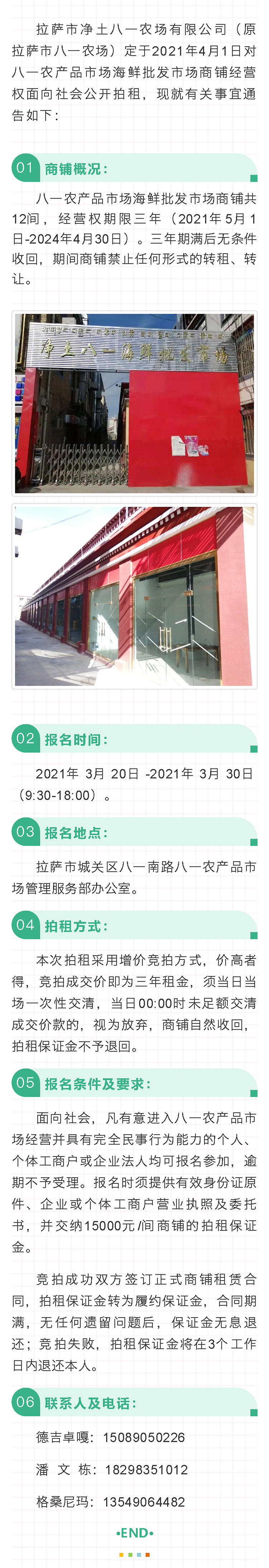 拉薩市凈土農(nóng)墾開發(fā)有限公司八一菜市場攤位經(jīng)營權(quán)公開拍租通告