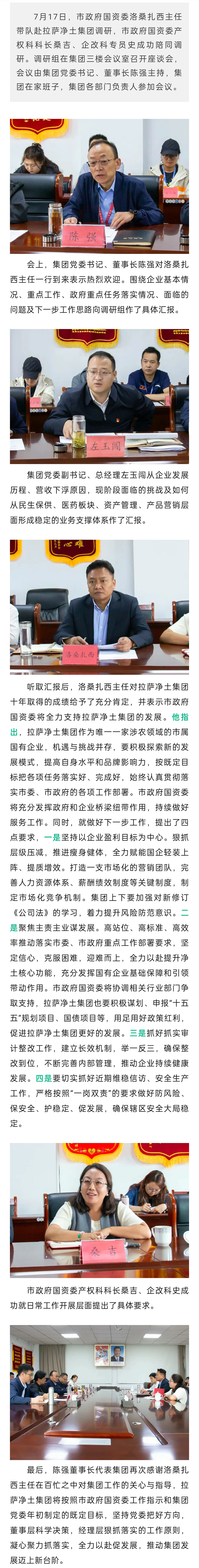 拉薩市政府國資委洛桑扎西主任一行赴拉薩凈土集團(tuán)開展調(diào)研
