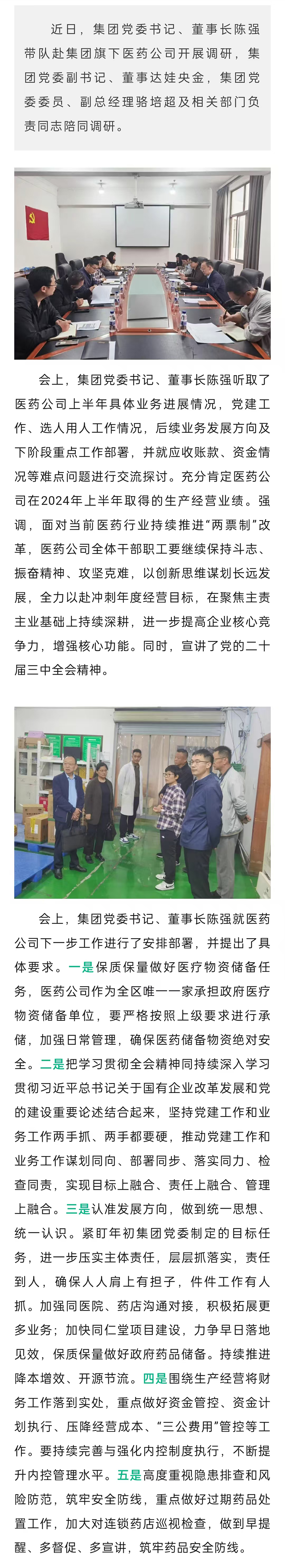 集團(tuán)黨委書記、董事長(zhǎng)陳強(qiáng)帶隊(duì)赴醫(yī)藥公司開展實(shí)地考察調(diào)研工作
