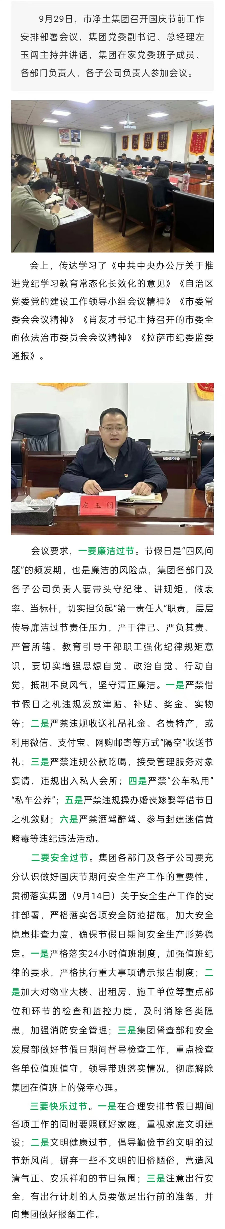 拉薩市凈土集團召開國慶節(jié)前工作安排部署會議