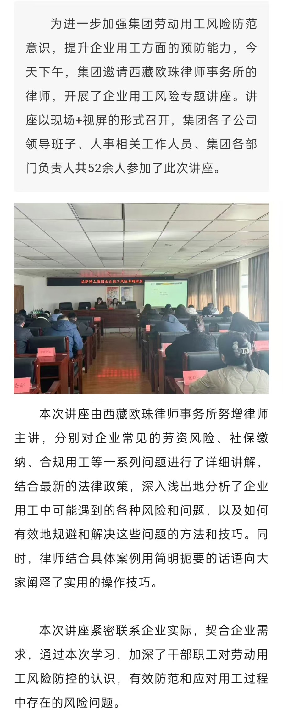 集團(tuán)開展企業(yè)用工風(fēng)險專題講座