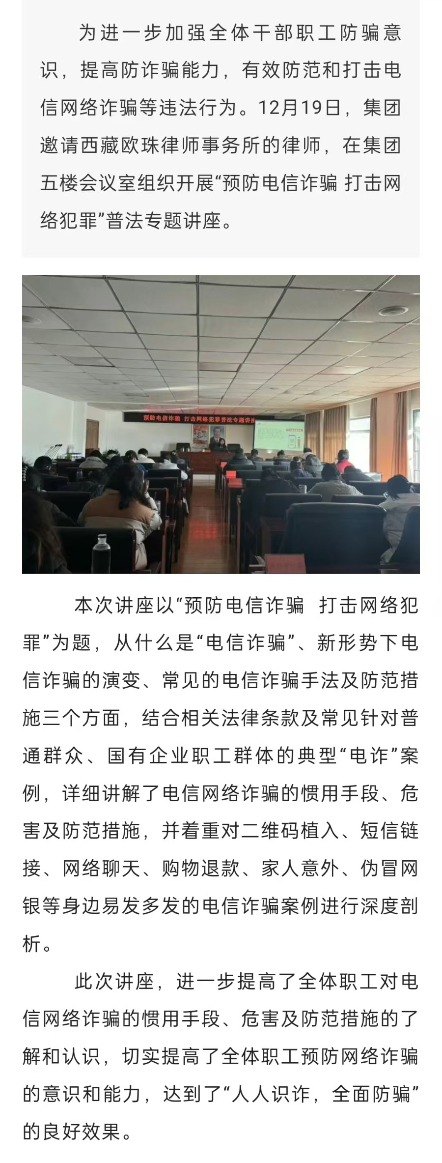 集團組織開展“預防電信詐騙 打擊網絡犯罪”普法專題講座