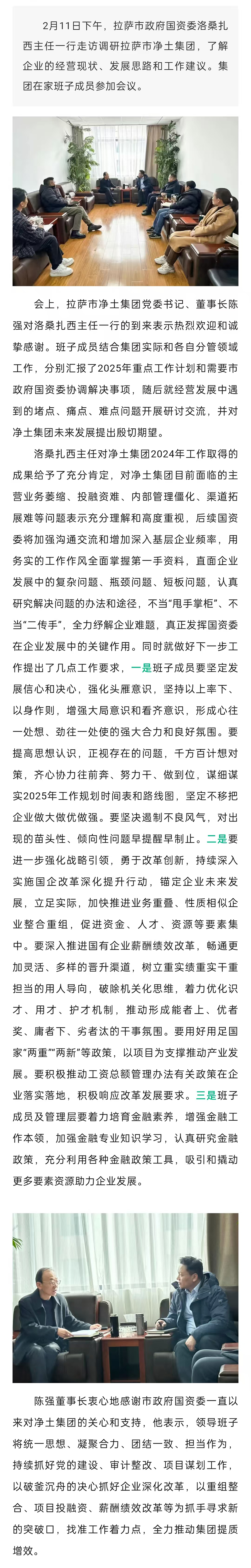 拉薩市政府國資委洛桑扎西主任一行赴拉薩市凈土集團開展走訪調(diào)研