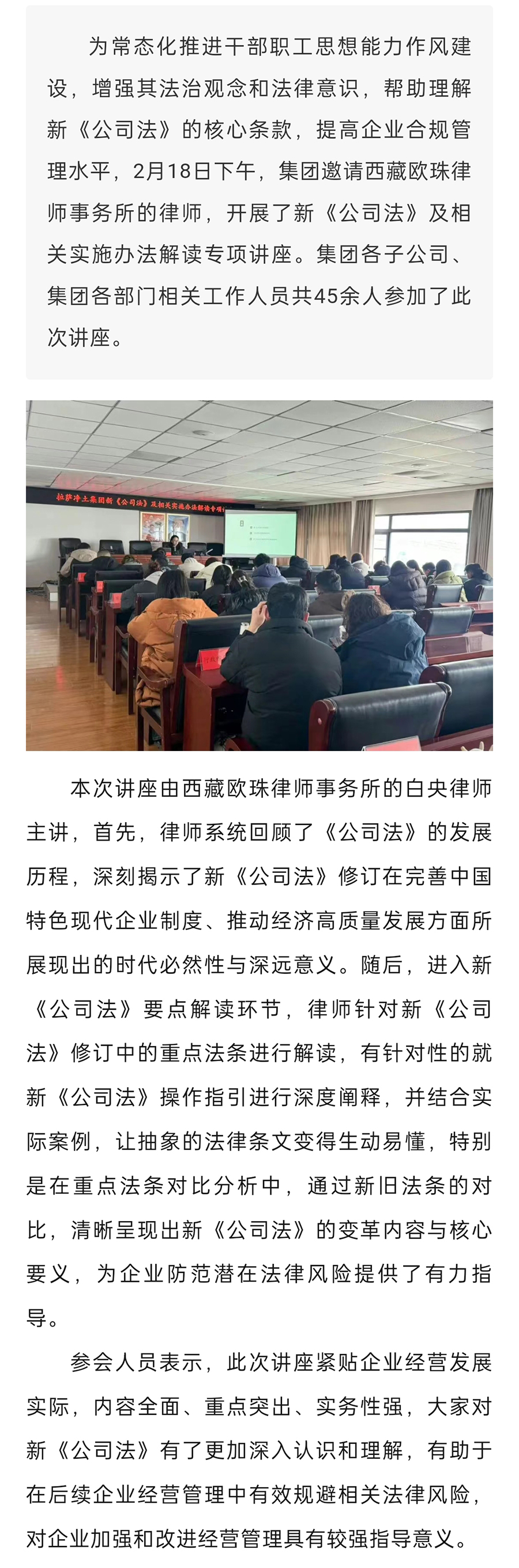 集團(tuán)開展新《公司法》及相關(guān)實(shí)施辦法解讀專項(xiàng)講座