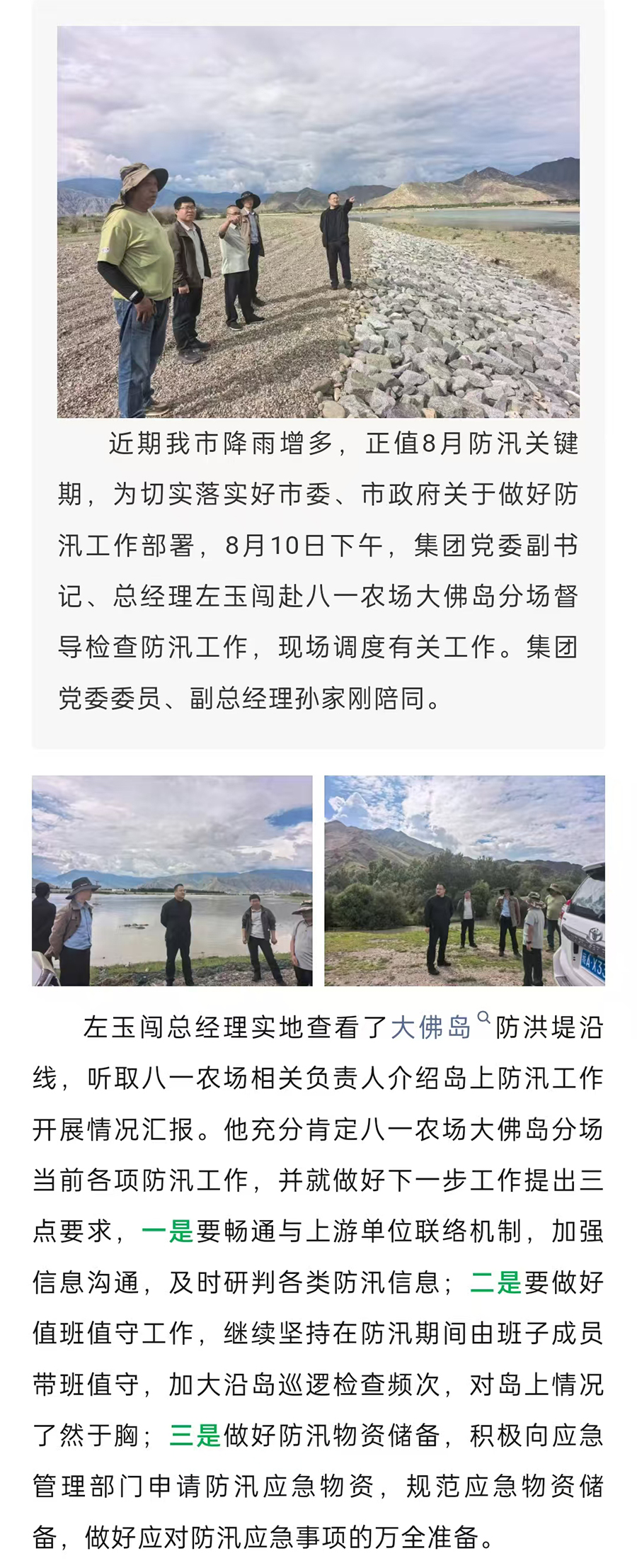 集團(tuán)總經(jīng)理督導(dǎo)檢查八一農(nóng)場(chǎng)大佛島分場(chǎng)防汛工作