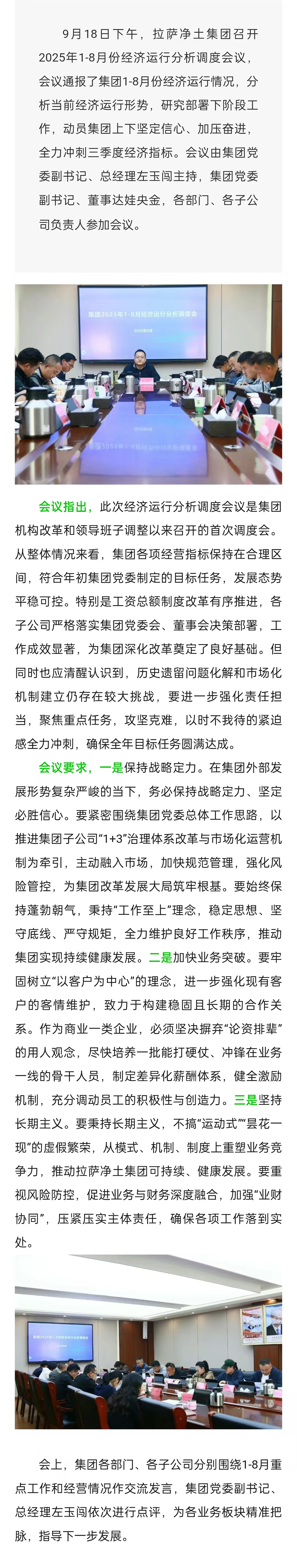 拉薩凈土集團召開2025年1-8月份經濟運行分析調度會議