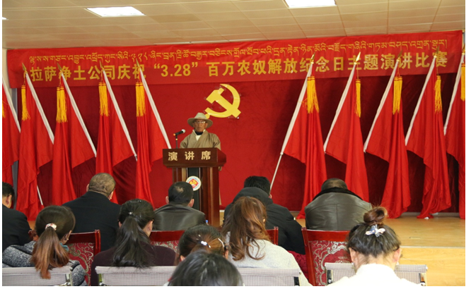 為隆重慶祝“3.28”百萬農(nóng)奴解放紀念日,市凈土公司在公司禮堂組織開展了慶祝“3.28”百萬農(nóng)奴解放紀念日暨主題演講比賽,市凈土黨委書記、董事長張進才同志,市凈土黨委副書記達瓦頓珠同志等領(lǐng)導(dǎo)以及各子公司職工代表共計49人出席。