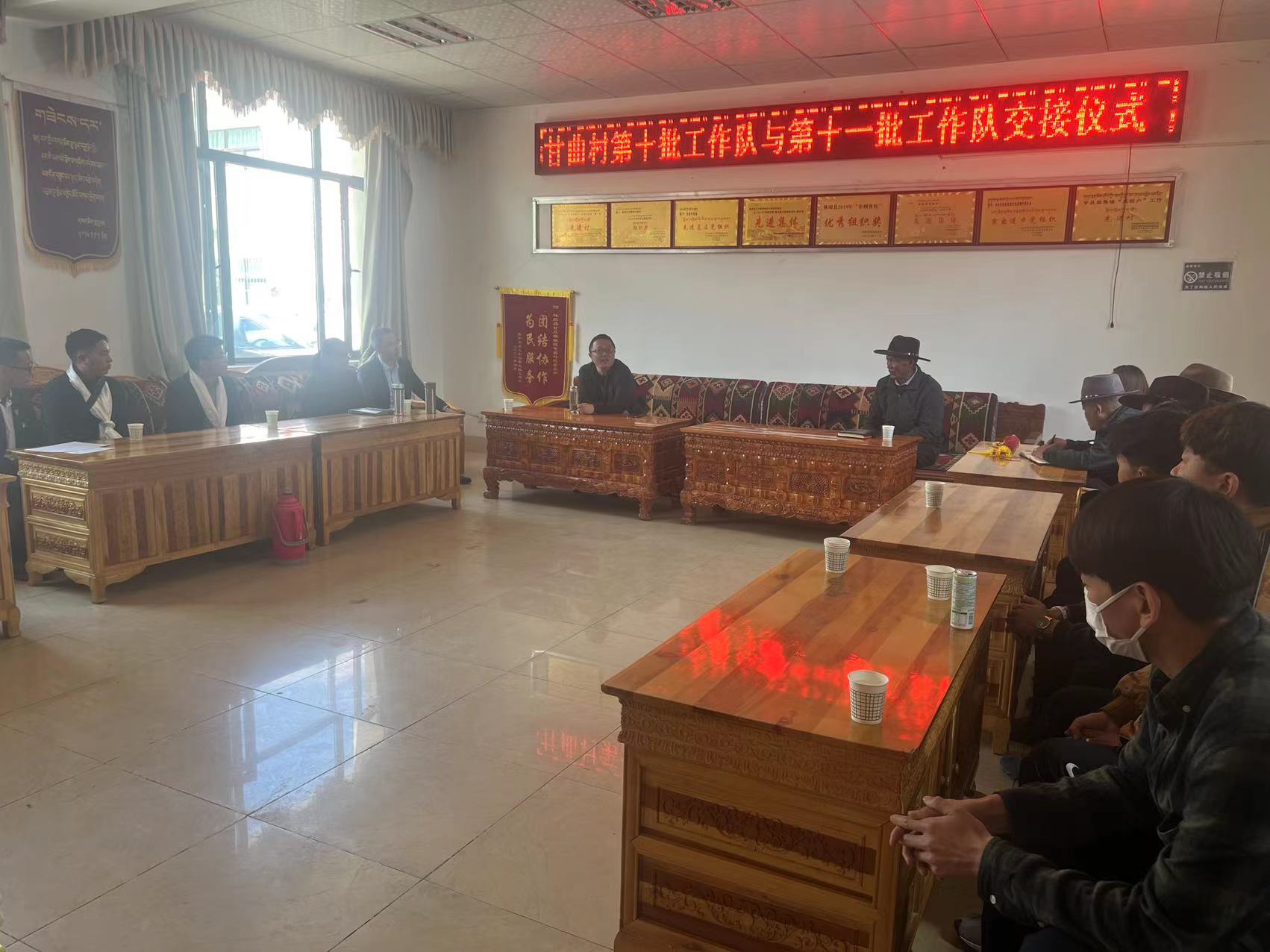 會(huì)上甘曲村村書記次成太亞詳細(xì)介紹了甘曲村的基本情況及第十批駐村工作隊(duì)的工作完成情況;甘曲鎮(zhèn)書記鄭杰同志在肯定第十批駐村工作隊(duì)的工作成績(jī)的同時(shí)再次重申了今年駐村工作的五項(xiàng)重點(diǎn)任務(wù),強(qiáng)調(diào)了駐村工作紀(jì)律。達(dá)娃央金同志也向與會(huì)同志詳細(xì)介紹了集團(tuán)第十一批駐村工作隊(duì)隊(duì)員的基本情況,要求新一批的駐村工作隊(duì)隊(duì)員要堅(jiān)決服從安排,聽取指揮,認(rèn)真履職盡責(zé),嚴(yán)守駐村工作紀(jì)律,圓滿完成駐村各項(xiàng)任務(wù)。