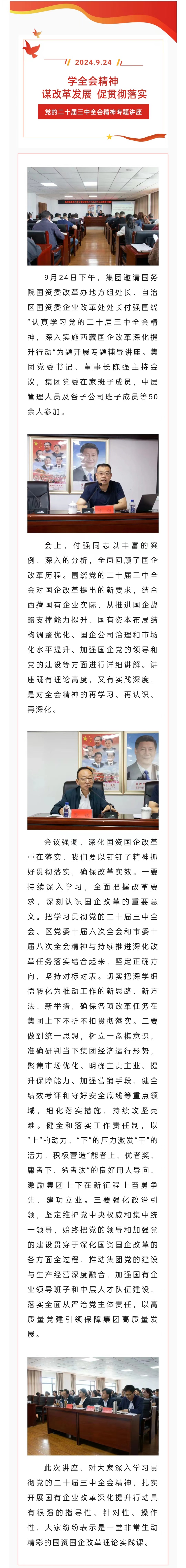 學(xué)全會精神 謀改革發(fā)展 促貫徹落實——集團開展深入學(xué)習(xí)貫徹黨的二十屆三中全會精神專題輔導(dǎo)講座