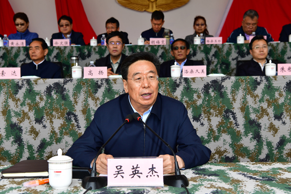 (圖為自治區(qū)黨委書記吳英杰在誓師動員大會上講話)