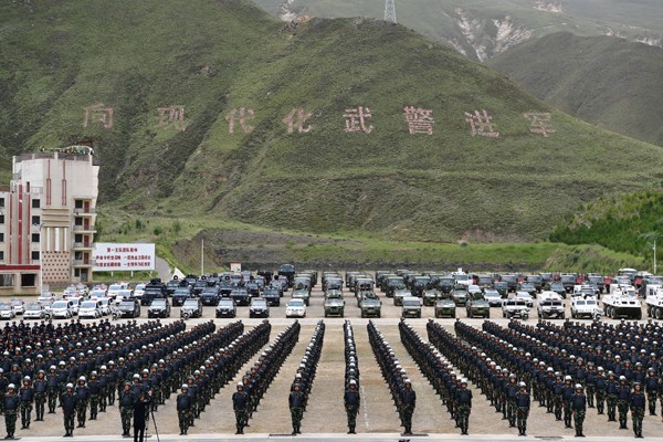 (圖為自治區(qū)及拉薩市隆重舉行迎接新中國成立70周年大慶安保維穩(wěn)力量誓師動員大會及武裝拉動活動現(xiàn)場)