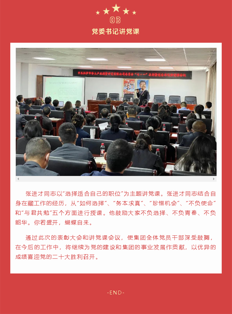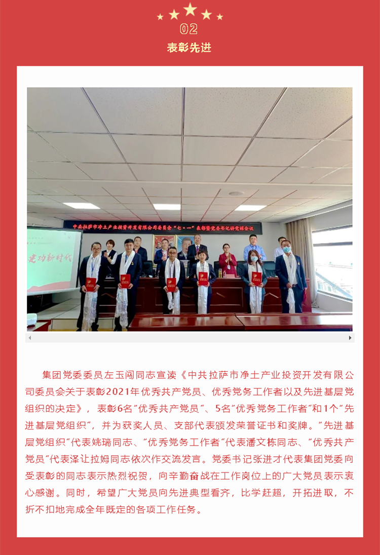 拉薩市凈土集團黨委召開“七·一”表彰暨黨委書記講黨課會議